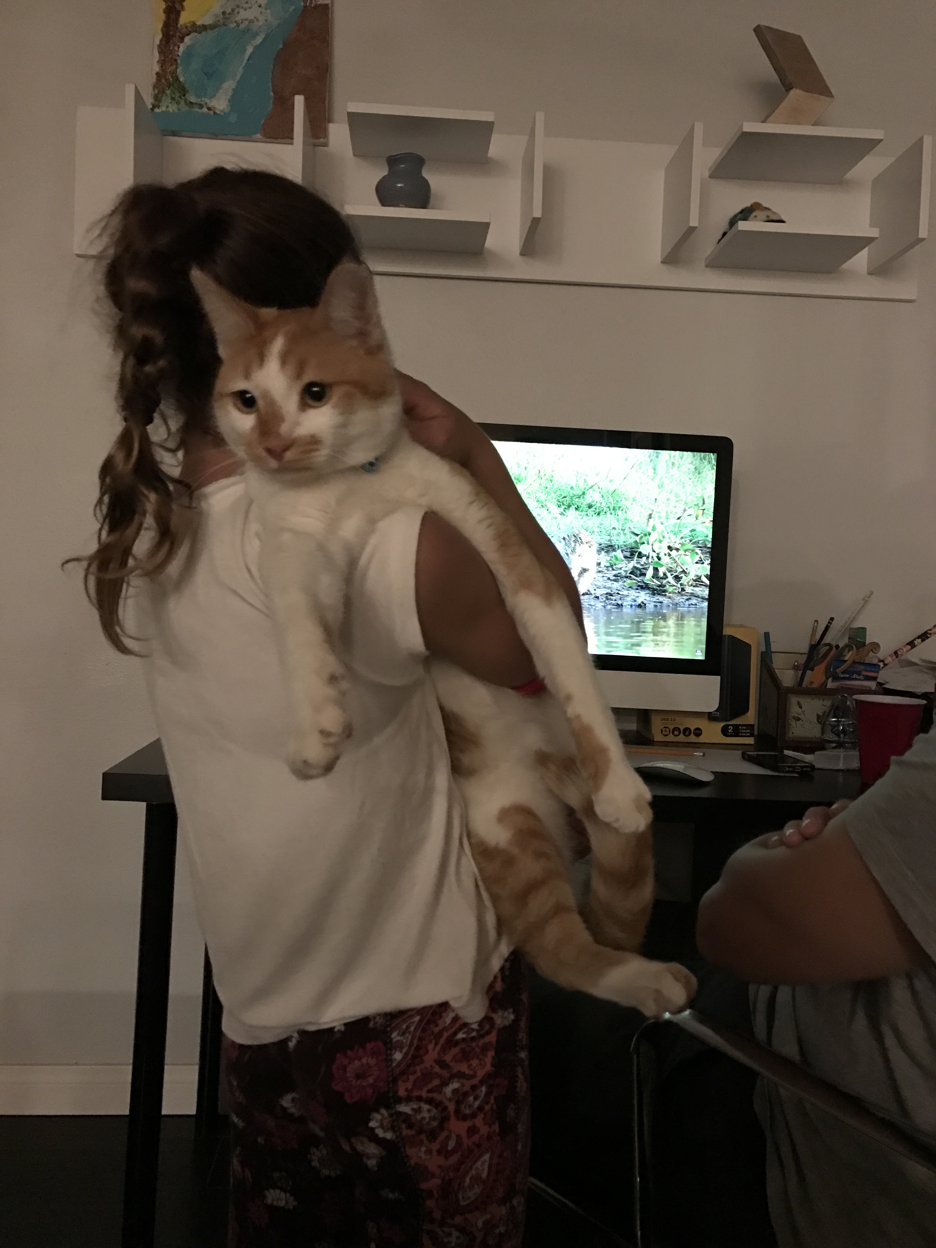 He is a good and sweet cat but when scared (to me only at this point) uses his very large teeth and makes it known. The first time ok the dog scared him and the second well I did it, part of my desensitizing training that I believe every animal should have to be good with kids….maybe he needs a few more days at home first.